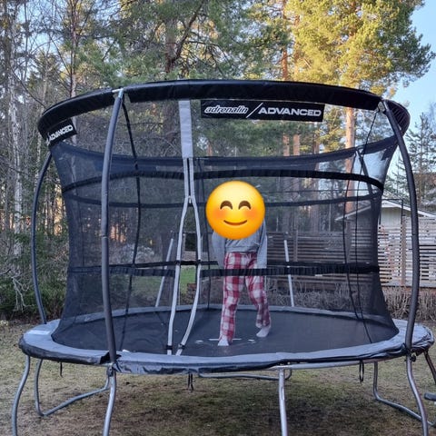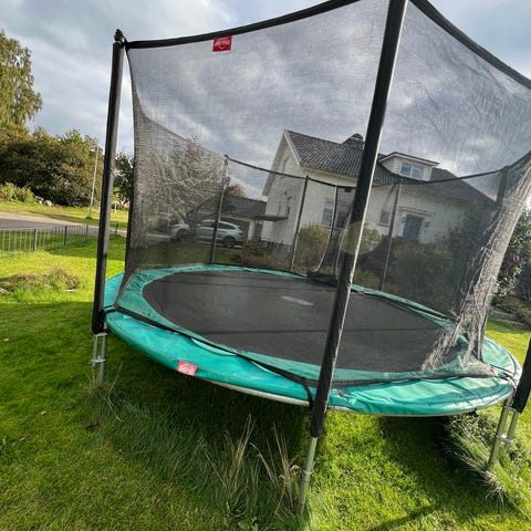 Studsmatta. 10 år gammal. 4 m i diameter