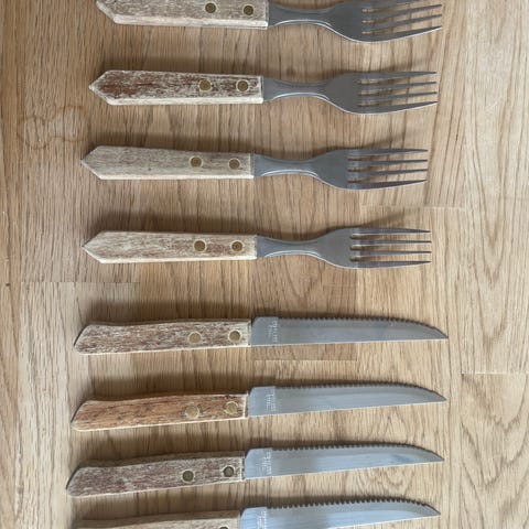 Bestickset gafflar och knivar rostfritt stål trähandtag
