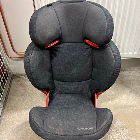 Maxi-Cosi Rodifix bälteskudde. Bilkudden är avsedd för barn som använder bilens trepunktsbälte. Modellen har hög rygg med sidokrockskydd och justerbart nackstöd. Klädseln är i mörk (färg antracit) textil. Passar för montering fram eller bak i bilen enligt bilens och stolens anvisningar.