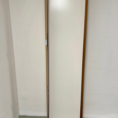 Det finns ett mindre skav på baksidan av ett av skåpen och på ett är en liten del av hörnet bort. Detta syns inte när de är monterade.