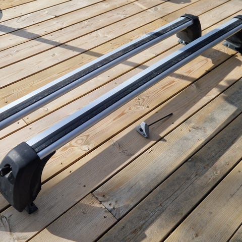 Har suttit på en Golf alltrack. Gummilisterna är kapade (se bild) för att passa med en cykelhållare.
