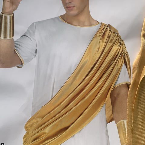 Maschera venetiansk mask för unisex i plast. Masken har ett dekorativt ansikte i ljus ton med guldfärgade detaljer och mönster. Överdelen är utformad med flera spetsar i blått, vitt, guld och silver med små kulor som dekoration. Masken har band för att knytas runt huvudet. Passar som prydnad eller för utklädnad för vuxna, enligt etiketten inte avsedd för barn under 14 år.