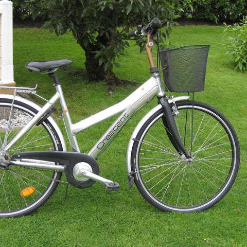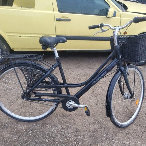 Treväxlad, fotbroms och handbroms. Belysning, cykelkorg, reflexer.