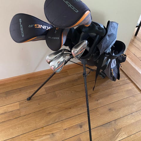 Wilson junior golfset med bärbag i svart och gult. Setet innehåller flera klubbor med matchande headcovers och en stående bärbag med utfällbara ben. Bagen har axelremmar för enkel transport och flera fack för förvaring av bollar och tillbehör. Passar åldern 7-9 år