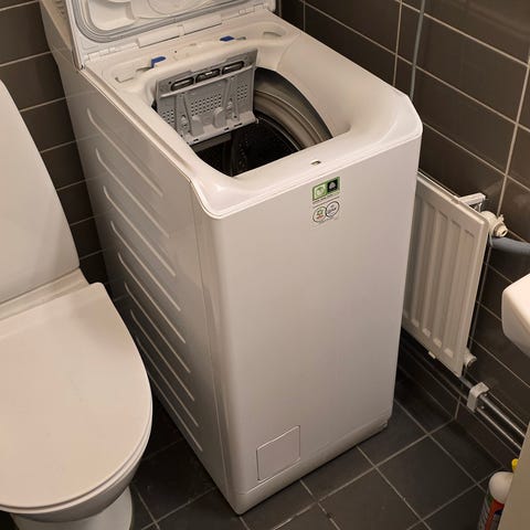 Electrolux Perfectcare 800 1-7 kg top-loading washing machine in white. The machine has a top with a door marked SoftAccess and a digital control panel with program selectors for, among others, Eco 40–60, cotton, synthetics, delicates, steam and rinse/spin. The panel has buttons for temperature, spin, prewash, rinses, extra rinse and Soft Plus. The top-loading design means that the machine fits in spaces where a front-loading machine cannot fit. The machine is intended for household washing of common textiles according to the specified programs. Will be thoroughly cleaned with a specialist washing machine cleaner before handover.