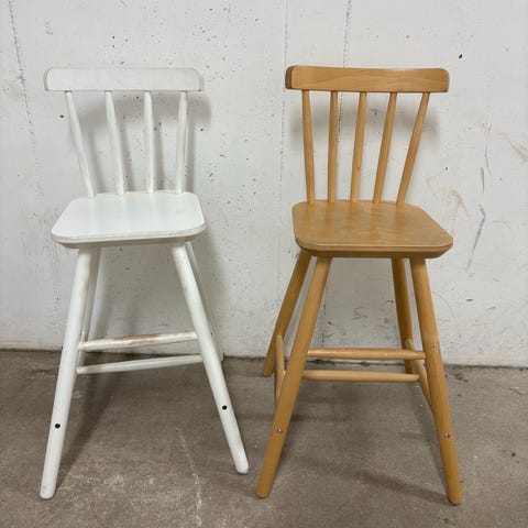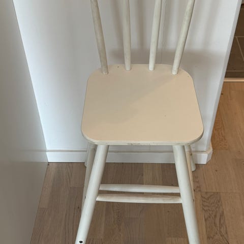 IKEA Agam juniorstol i svart. Klassisk pinnstolsmodell med ryggstöd och fotstöd.
