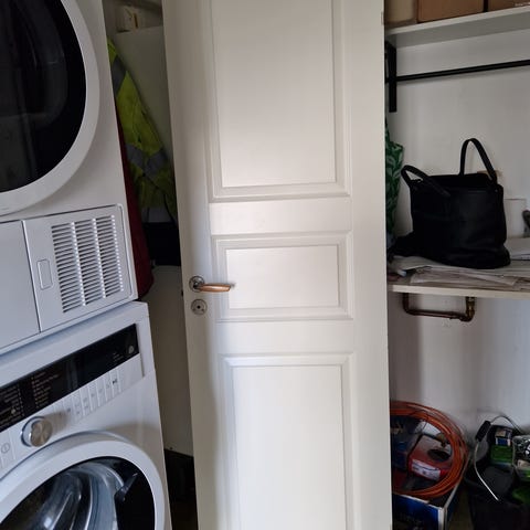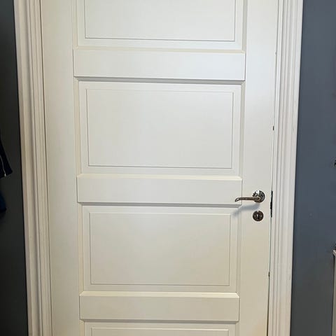 Renoverat i sommarstugan och har en fin vit dörr med dörrkarm över.