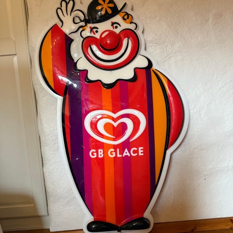Dubbelsidig reklamskylt GB glass. Skylten är cirka 115 cm hög och 60 cm bred. Foten lite skadad, se foton.