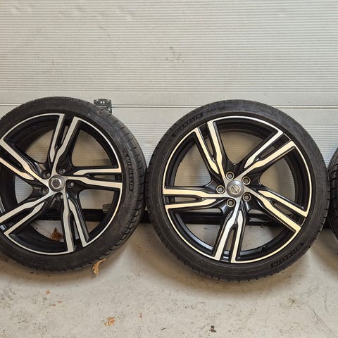 Säljer vovlo r fälgar 19 tum med MS däck monterat med 5 mm mösterdjup. Dom är balanserade och har bultcirken 5-108