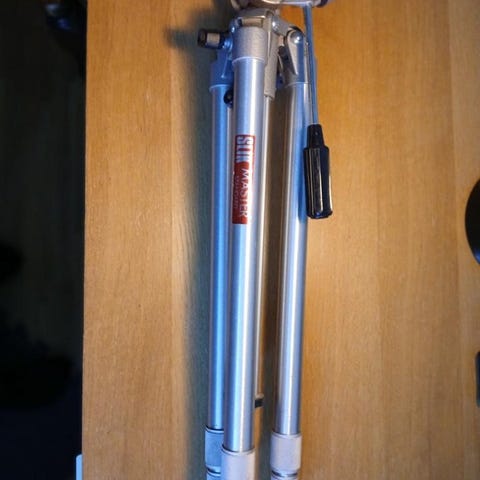 Kowa TS-1 tubkikare (”Blykowa”) med okular 16x. Stativ Velbon VEF-3. Klistermärke ”Eskilstuna fältbiologer”. Inköpt ca 1980.