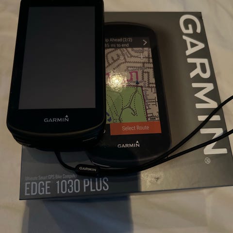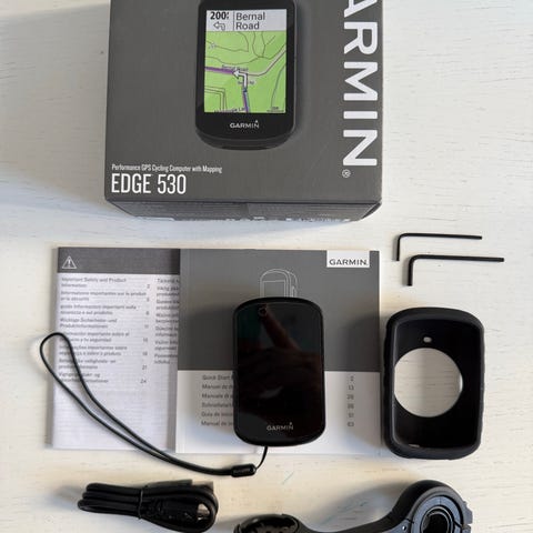 Enheten är i väldigt bra skick och laddas med USB-C kabel som ingår. Minneskort ingår också. Montera och ut å cykla!