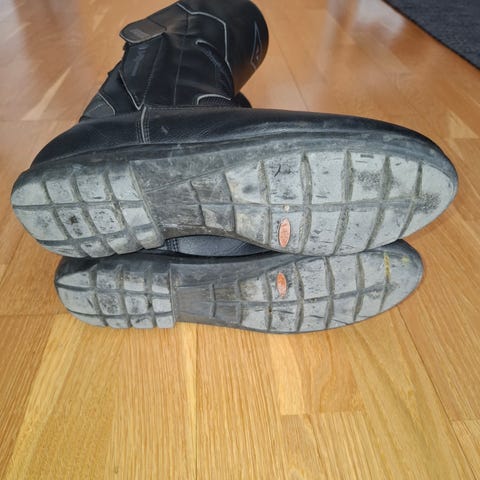 Prexport mc-stövlar i svart läder. Stövlarna har kraftig sula med grovt mönster för bättre grepp. Justerbart spänne och kardborreband ger möjlighet till anpassad passform runt vrist och skaft. Modellen är avsedd för motorcykelbruk och ger täckning upp över ankeln för extra skydd vid körning.