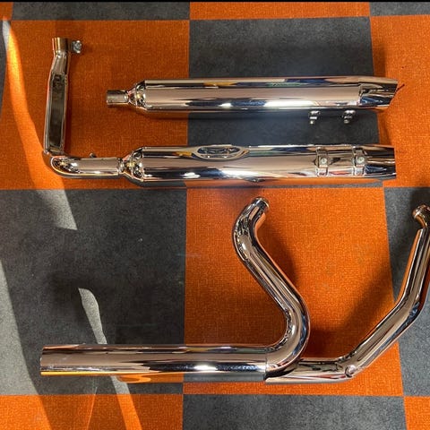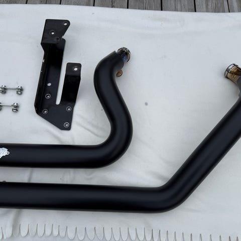 Cobra 2-1 mattsvart helsystem. Passar Harley touring-modell liknande den som visas på bilderna (Street Glide ST 2022). Avsett som ersättnings- eller uppgraderingssystem för befintligt avgassystem på motorcykel. Skickas inte! Swish betalning