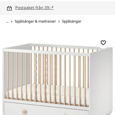 Spjälsäng i trä med ribbor och förvaringslåda undertill. Sängen har en blå ram med naturfärgade ribbor och ben.madrass Himlavalv i mycket bra skick. Allt har använts under två år.