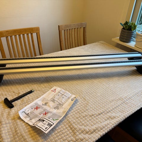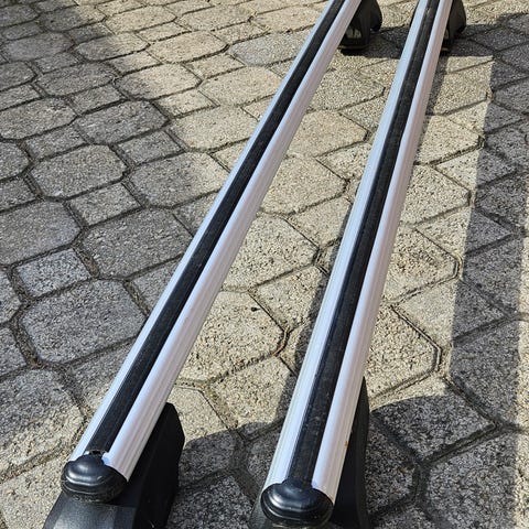 Takräcken för Audi Q5. Består av två lasthållare med infästning i plast och metall. Lämpligt för montering av tillbehör som takbox, cykelhållare eller annan last på biltaket.
