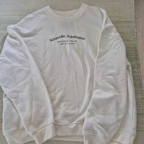 Jättefin collagetröja från märket Zara i vit bomull i storlek XS för dam. Modellen har rund halsringning och lång ärm. Plagget har tryck med texten "New York" framtill.