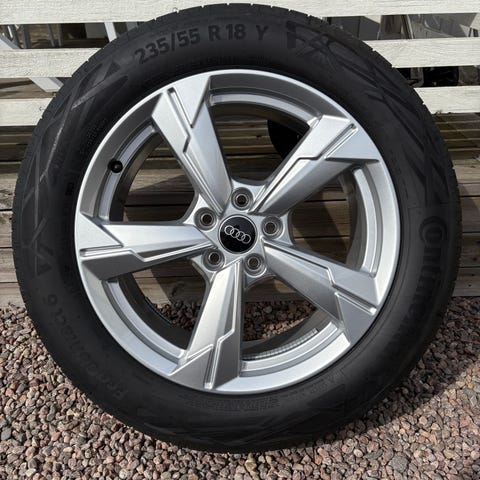 Säljer ett komplett set med originalfälgar från Audi, 16 tum, som suttit på Audi A3 8Y (2021).