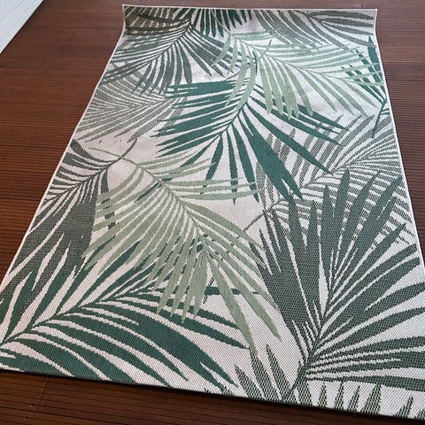 IKEA matta med blå, gröna och gula nyanser och bladmotiv. Rektangulär modell som passar fint i ett barnrum. Fint skick.