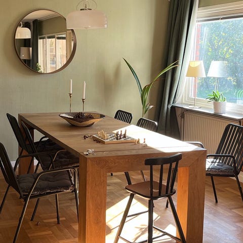 Säljer 6st matstolar från Furniturebox med grå stoppad sits och björkben.