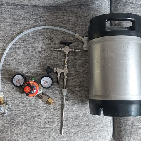 Ölfat med tappkran och gaspatroner rostfritt stål