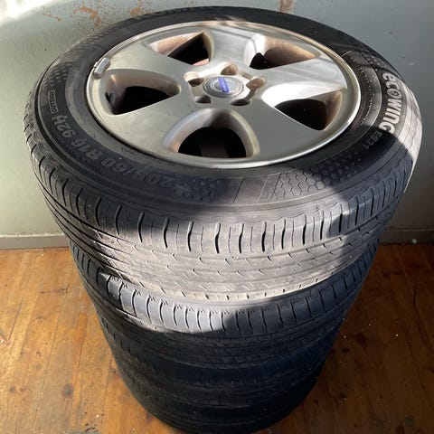 15” lättmetallfälgar med äldre Continental däck.