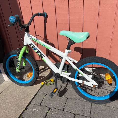 White barncykel 16" grön/gul