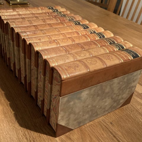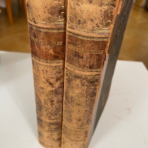 Hjalmar Bergman boktrilogi i tre band med skinnrygg. ”Vi bokar, krokar och rothar”, ”Girolamo Savonarola munken som tjänade Gud”, ”Klokeberga och Ryglinge”.
