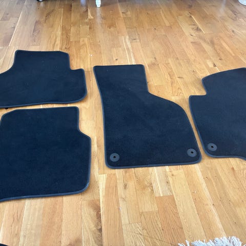 Upp sättning med fyra mattor anpassade för fram- och baksäte. Mattorna har fästen på fram mattorna för att ligga stadigt på plats. Passar som interiörskydd i bilens kupé mot smuts och slitage på golvet.