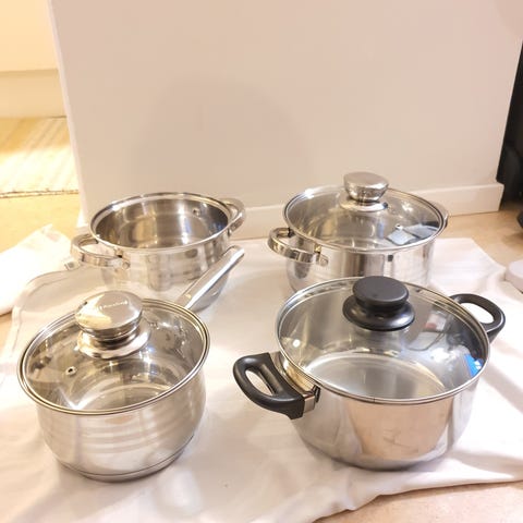 Hackman kastrullset i rostfritt stål. Setet består av 5 kastruller i olika storlekar med lock. Alla delar är i rostfritt stål med handtag i metall.