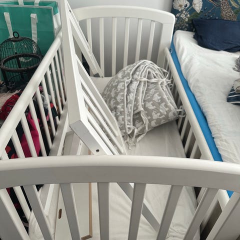BORTSKÄNKES Gammal Spjälsäng från Babyland med madrass