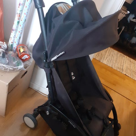 Babyzen Yoyo resevagn i beige tyg med svart chassi.