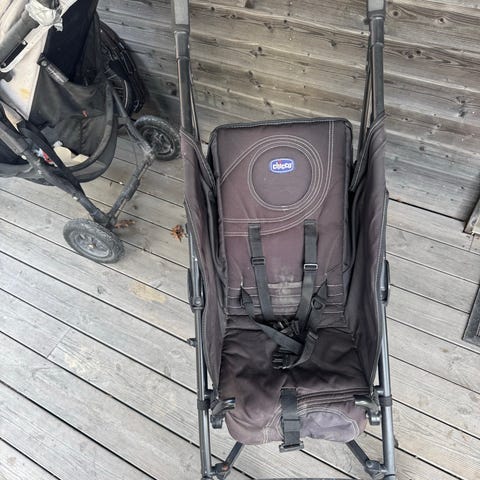 Vagnen har justerbart ryggstöd, fempunktssele och varukorg under sittdelen.