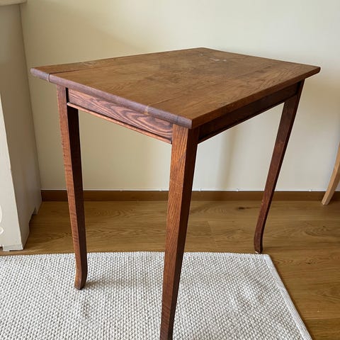 Nätt litet, klassiskt bord med rektangulär bordsskiva och fyra profilerade ben. Passar som soffbord eller sidobord i vardagsrum eller liknande utrymme.