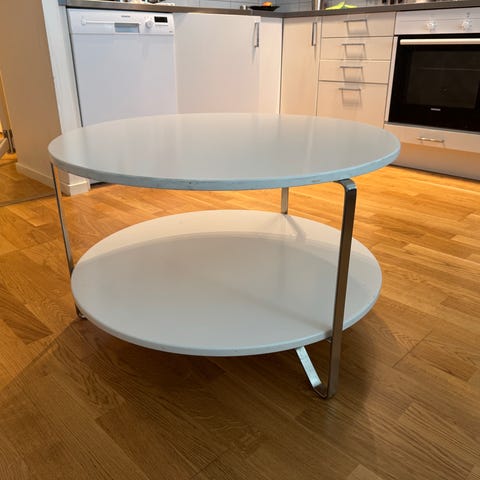 Runt soffbord i glas från IKEA. Med hjul, två plan.