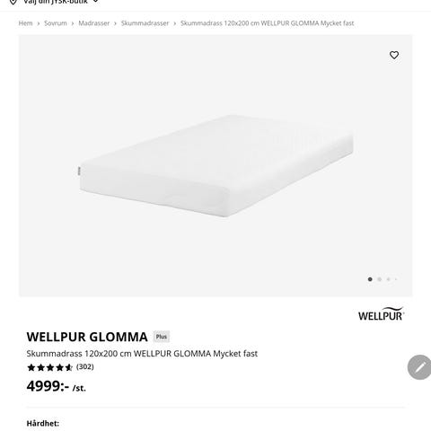 I stort sett oanvänd bäddmadrass av märket Wellpur säljes. Modellen heter Gold T65 och är i dimension 120x200x8cm. Den har en kärna av Memoryfoam och har legat i en gästsäng som nästan inte har använts. Nu har vi köpt en bäddbadrass i annan dimension och denna bäddmadrass har därför blivit över enligt bild. Nypris var ca. 5000 sek.