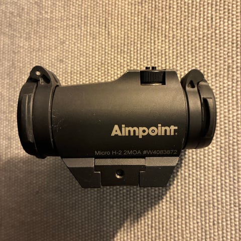 Säljer en Aimpoint Micro H-2 med 2 MOA prick. Ett av marknadens mest pålitliga och kompakta rödpunktssikte – används av både militär och jägare världen över. Medföljer Picatinny-fäste. Säljes då jag aldrig kommer ut och jagar längre. Inköptes 2024 och i princip oanvänd då det knappt blivit någon jakt senaste åren. Kan skickas