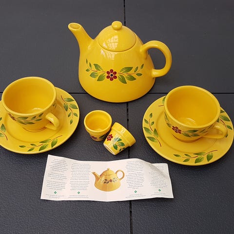 Jättesöt servis i 12 delar med söta barnmönster och "guldkant".