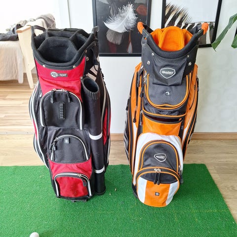 Golfbag, vagnbag i gott skick, har 14 fack för klubborna och passar perfekt för dig som vill ha bra ordning med gott om plats för många klubbor.