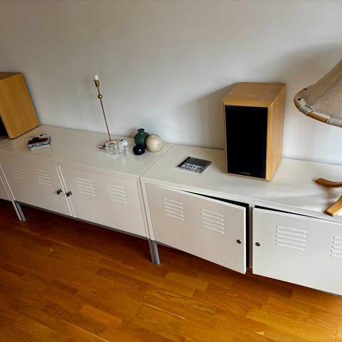 Skåp med hyllplan och låsbara dörrar. 119x63x40 cm