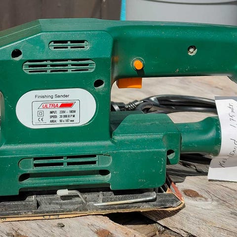 Bruksbo planslip 135W i grå färg. Elektrisk planslip med rektangulär slipplatta och sladdanslutning. Lämplig för slipning av trä och andra släta ytor vid renovering och finslipning. Levereras med originalkartong enligt bild.
