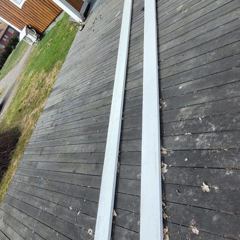 Säljer total 7 mts (4000+3000/150) hängrännor i svart plåt, ej använda, bara legat i trädgården.