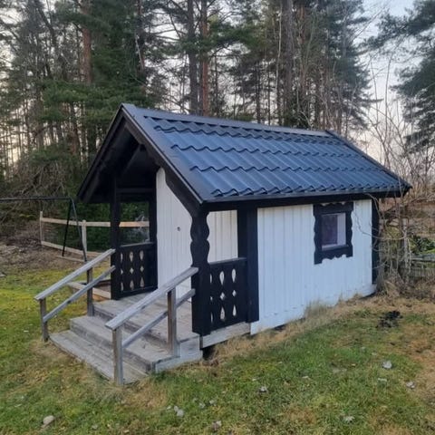 Rejäl lekstuga i behov av kärlek och barn. Behöver ny takpapp, ny färg och lekglada barn.