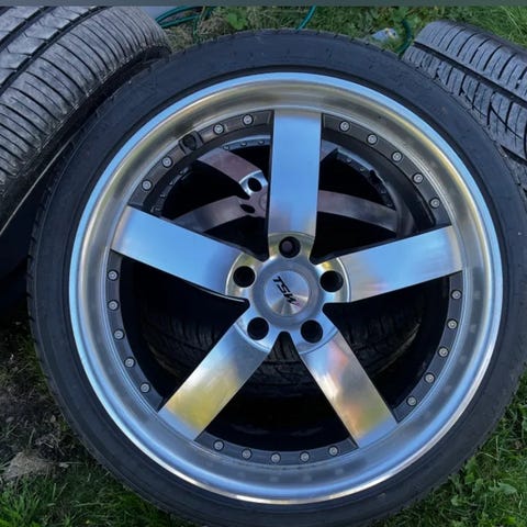 Inget kantskrap (endast ett mycket litet märke på en av kanterna. Se bild med alla fyra fälgarna - däcket längst till höger - typ kl. 12:30)