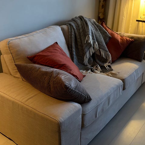 Mycket bra skick. Soffan är sparsamt använd eftersom vi har bott utomlands stora delar av tiden. Inga husdjur, rökfritt hem.