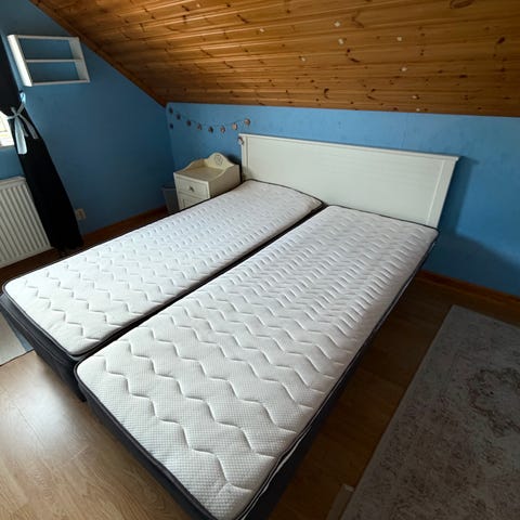 Vill sälja min säng , allt ingår , 2 madrasser 1 överdrags som är tjock och själva sängramen