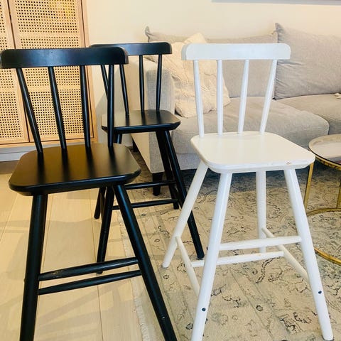 Stolarna har högre sitthöjd än vanliga barnstolar och är utrustade med fotstöd. Passar för barn som behöver sitta högre vid bord, till exempel vid matbord eller pysselbord.
