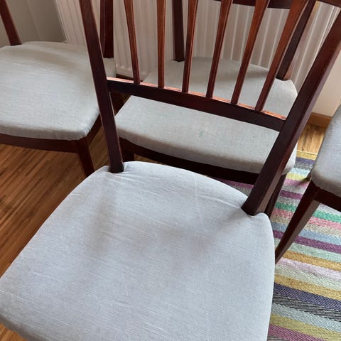 Sköna matstolar, lös klädsel men utan klädsel. Pris är för samtliga. Nypris ca 3000 med kädsel
