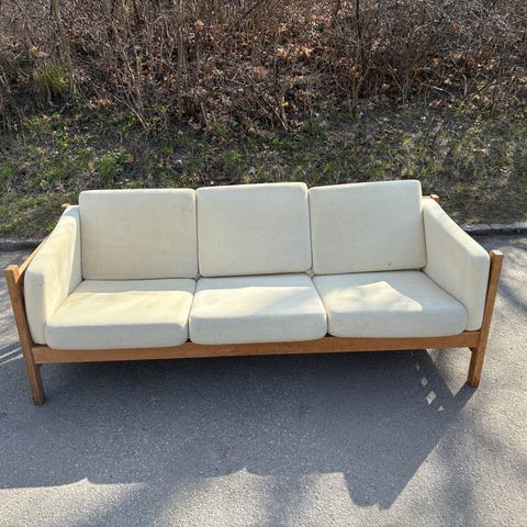 Johannes Andersen mid century soffa omklädd i fint Manchester tyg.