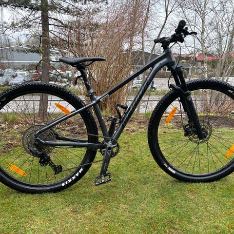 MTB i mycket fint skick. 12 växlad Shimano Deore / XT. Dämparna på framhjulet regleras via lockout på styret. Flaskhållare finns monterad. Det sitter ett lite smalare juniorstyre på men originalstyret finns och skickas med. Ramstorlek small.
