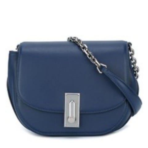 Celine axelremsväska för kvinna i svart läder. Väskan har justerbar axelrem med metallspänne och klaff framtill med dekorativ läderdetalj. Modellen bärs crossbody eller över axeln och rymmer mindre vardagliga tillhörigheter som plånbok, mobil och nycklar. Passar som vardagsväska eller till enklare festliga tillfällen. Insidan är organiserad för personlig förvaring beroende på modellens exakta utförande.